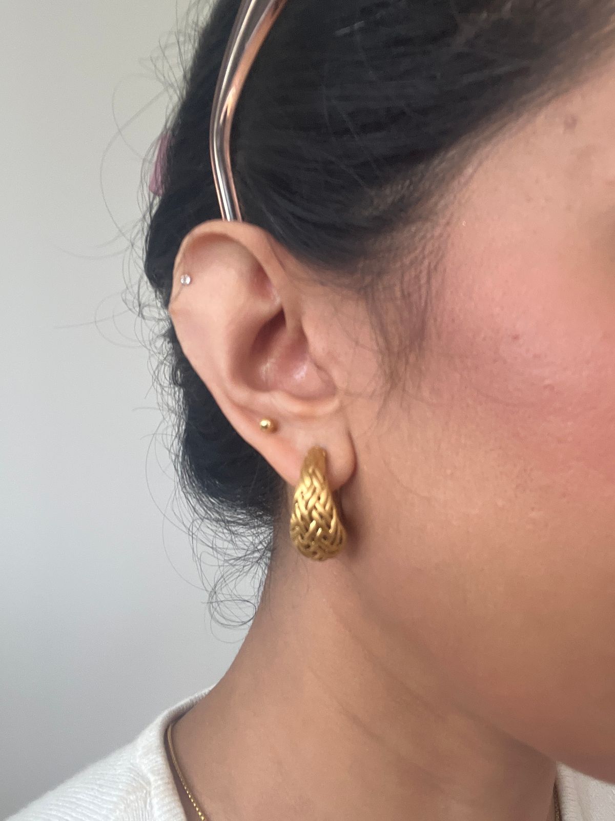 Watch the compliments roll in with the lightweight Cinta Huggie Hoops. The bold crescent shape—brought together by a beautiful weaved design—comes hollowed out for complete ease of wear.