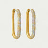 A balance of both feminine and masculine design, these pavé-embellished hoops are marked by an oval-like shape and an easy-to-fasten hinge closure.